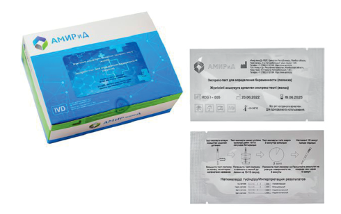 Иммунохроматографический анализ для определения содержания хорионического гонадотропина человека (ХГЧ) в образце мочи человека. Чувствительность теста составляет 25мМЕ/мл.